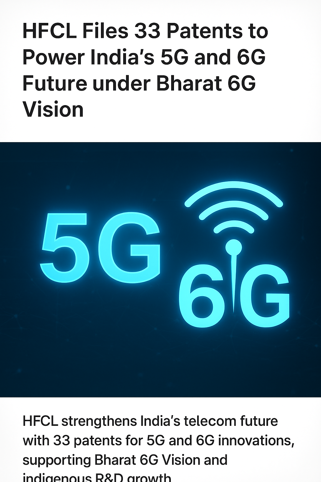 HFCL Files 33 Patents to Strengthen India’s 5G and 6G Leadership