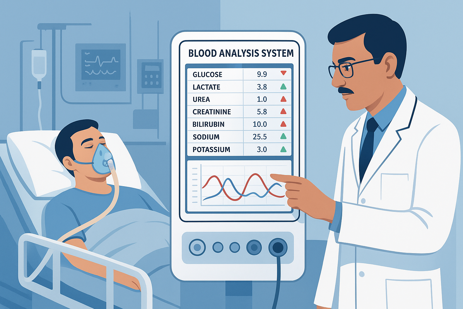 The device also enables targeted correction of abnormal blood parameters. By doing so, it reduces complications and enhances survival chances in intensive care units.